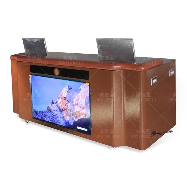 ③桌面配置电脑升降器;桌体正前方也可加装电脑显示器或液晶电视,方便提示嫌疑人须知问题;