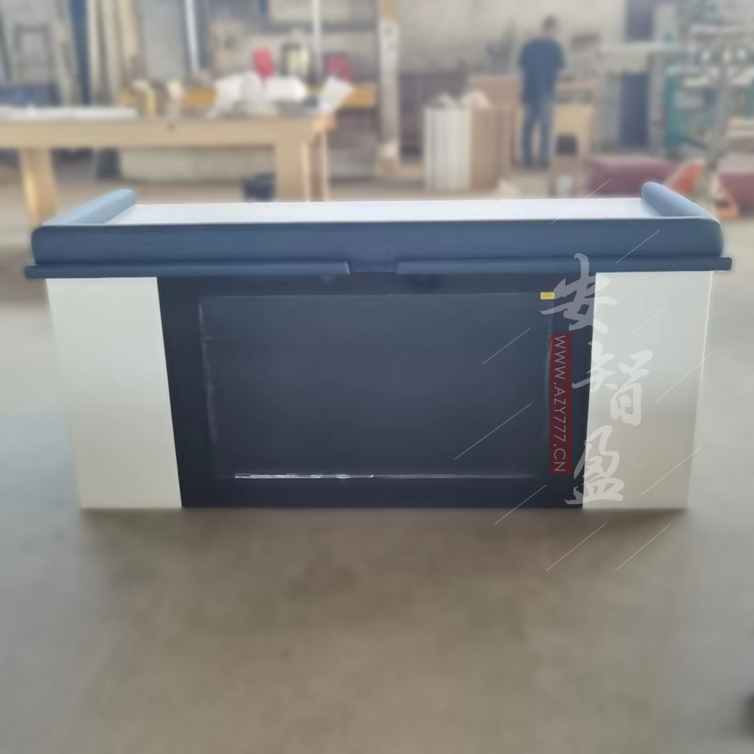 ②桌体正前方可加装7.5cm直径jing徽、摄像头、音响、录音等设备,也可加装43寸示证屏,方便嫌疑人查看须知问题;